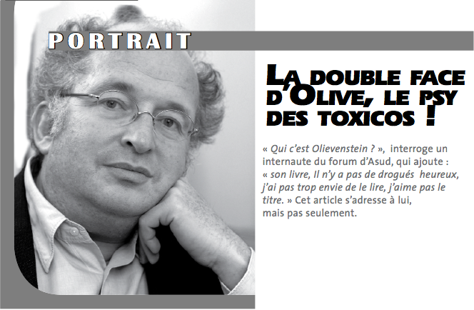 L’éthique de soin est irréprochable. Aussi, les premières initiatives ont presque toutes sollicité le soutien d’Olievenstein, AIDES dès 1986, Médecins du monde dès 1988, et bien d’autres ensuite. Les Asudiens ne l’ont pas fait, mais que pouvaient-ils lui demander ? A priori, il n’était pas un ennemi, mais les Asudiens ne voulaient pas de porte-parole, ils voulaient parler en leur nom propre. De plus, s’ils refusaient la médicalisation, la prescription d’opiacés était une des premières revendications. La discussion ne pouvait manquer d’être confuse. Elle l’a d’ailleurs été avec tous ceux qui l’ont sollicité. Sur la méthadone, il a résisté jusqu’au bout, mais l’argumentaire change avec les interlocuteurs. Dans Le Figaro, il dénonce « la méthadone en désespoir de cause » mais propose, dans un entretien, de mettre la méthadone en vente dans les bureaux de tabac, une proposition parfaitement irréaliste mais qui lui attire la sympathie des antiprohibitionnistes. Dans Le Monde, il se déclare pour « une prescription médicale au cas pour cas ». La position semble modérée pour ceux qui ne connaissent pas la réalité de terrain mais jusqu’en 1995, la prescription d’un opiacé était illégale, et les médecins risquaient une interdiction d’exercer.